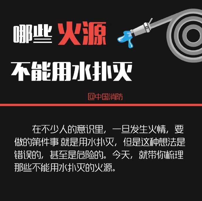 很多人发现着火后,都会大喊,着火了快拿水啊,其实这种思维是错误的,甚至是危险的,中消消防提醒您,以下几种火灾不能用水扑救: