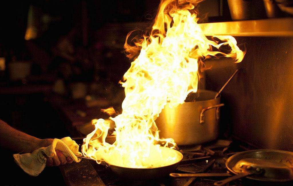 二、油锅;油锅起火时,千万不能用水浇。因为水遇到热油会形成“炸锅”,使油火到处飞溅。扑救方法是,迅速将切好的冷菜沿边倒入锅内,火就自动熄灭了。另一种方法是用锅盖或能遮住油锅的大块湿布遮盖到起火的油锅上,使燃烧的油火接触不到空气缺氧窒息。