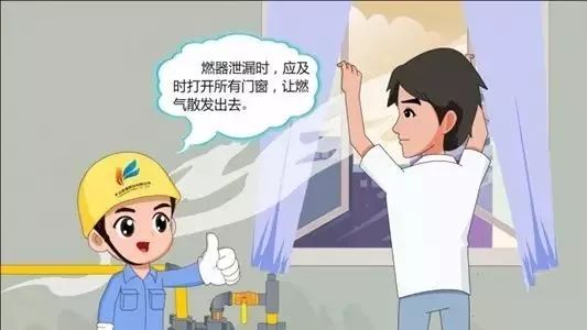 一旦发现燃气泄漏,要迅速打开所有门窗通风,让燃气散发出去。