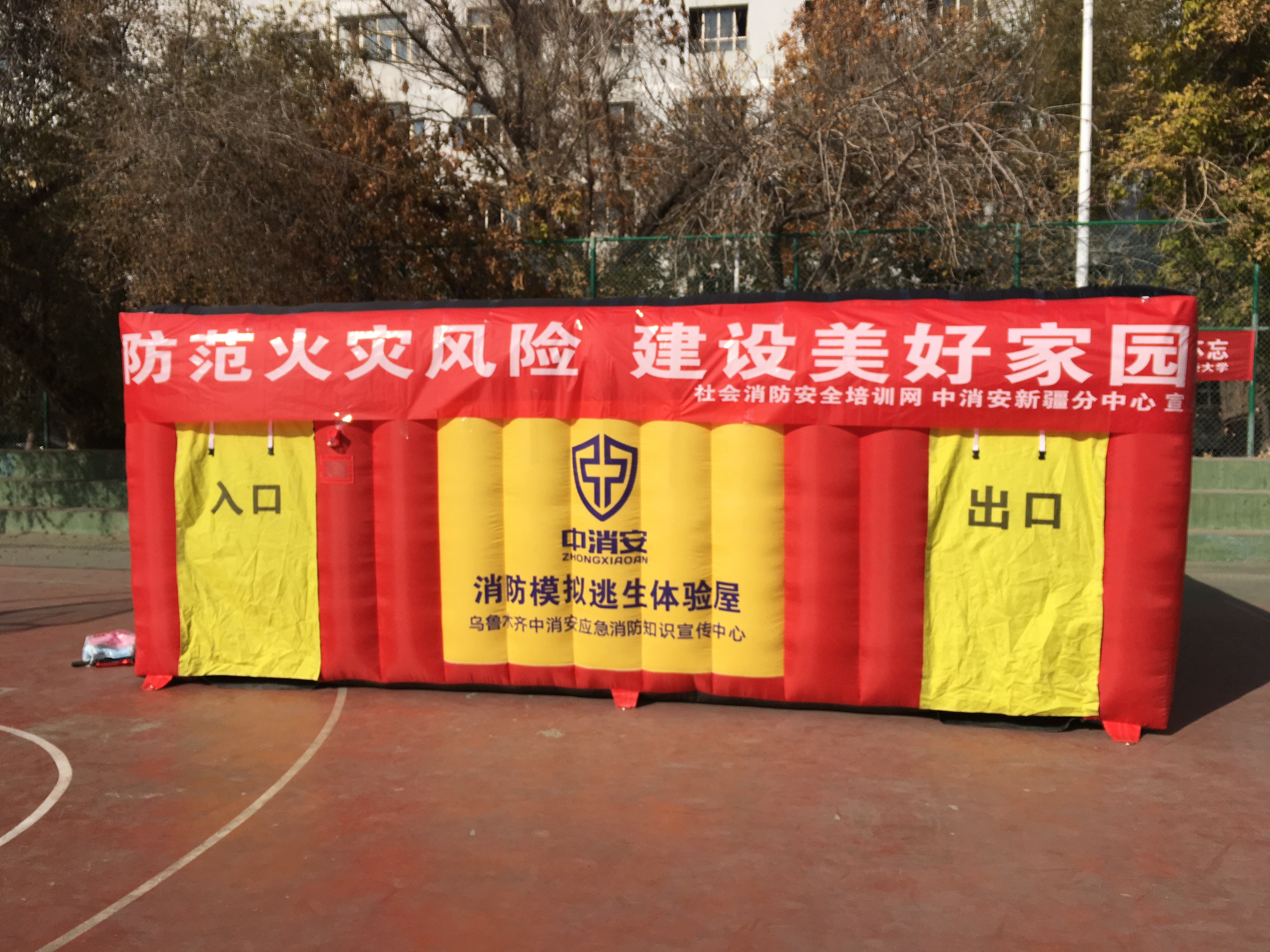 乌鲁木齐中消安岑荣斌主任在新疆财经学院组织119消防宣传活动